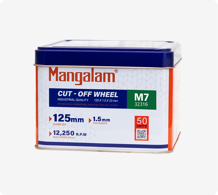 Mangalam Green M7 is a high-performance cutting wheel crafted for industrial-grade cutting across a range of metals. Reinforced with a single fiberglass net and premium aluminium oxide grains, it delivers sharp, stable cuts while maintaining disc integrity under high-speed operations.
